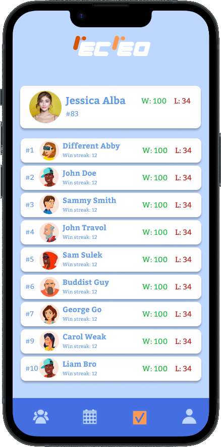 Climb the Recreo leaderboard by winning matches and improving your stats. See where you rank among other players and aim to become one of the top competitors in your area.