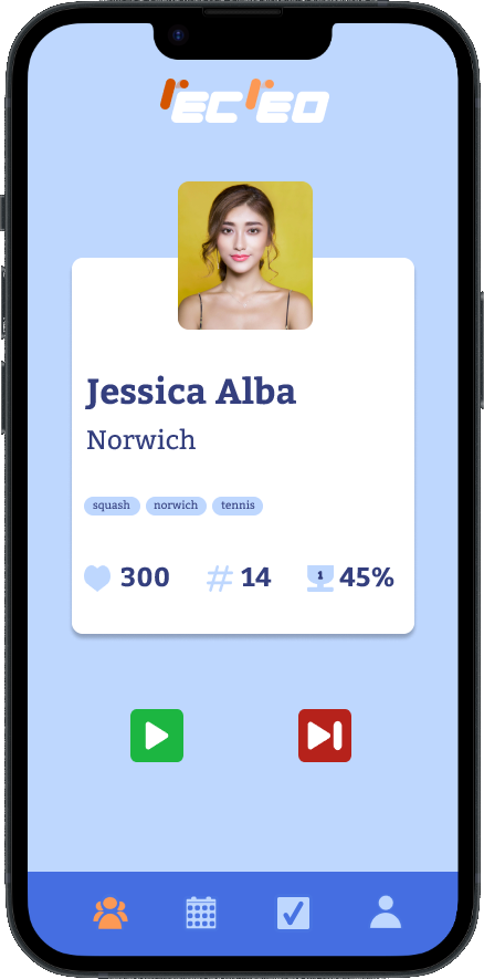 Browse and swipe through local players who share your sport and skill level. Whether it's squash, tennis, or football - you choose who to challenge and when to play.