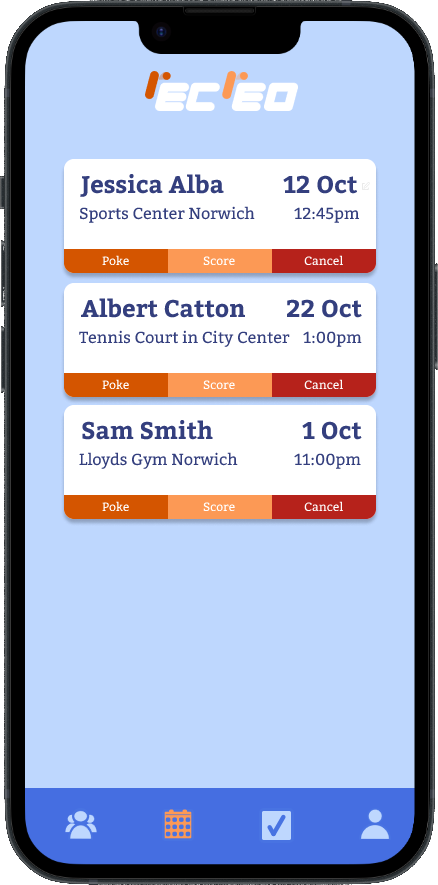 Keep track of your ongoing matches in one place. Poke your opponent to remind them, update your score, or cancel if plans change - all managed easily inside the app.